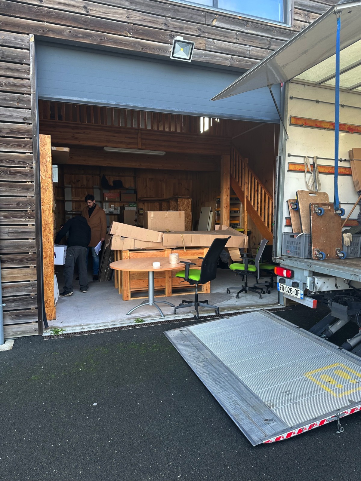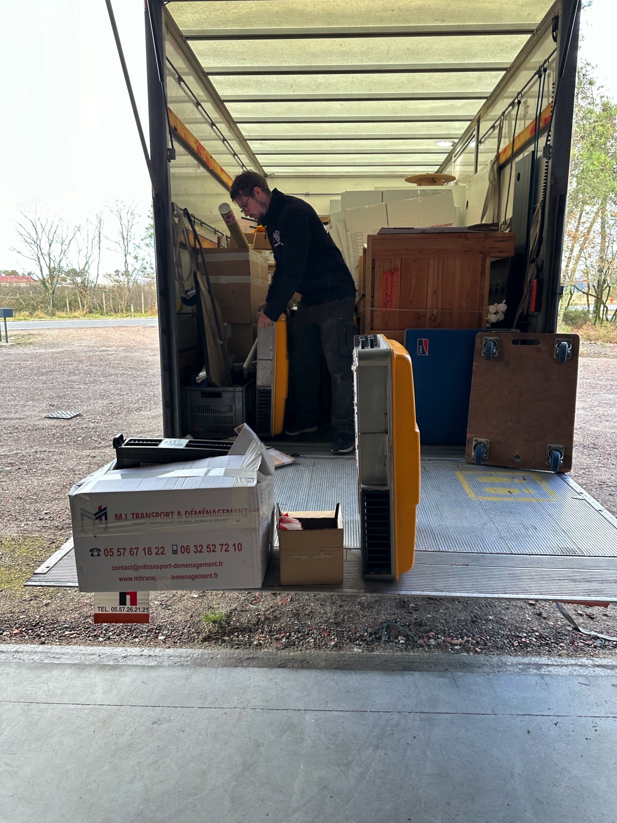 Pour mener à bien ce transfert, deux déménageurs ont été mobilisés avec un véhicule 20m³ équipé d'un hayon.